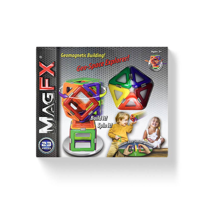Há um total de 23 peças no conjunto, incluindo 2 formas, 6 cores, placas magnéticas e 1 acessório, que podem ser montados em mais de 100 formas!